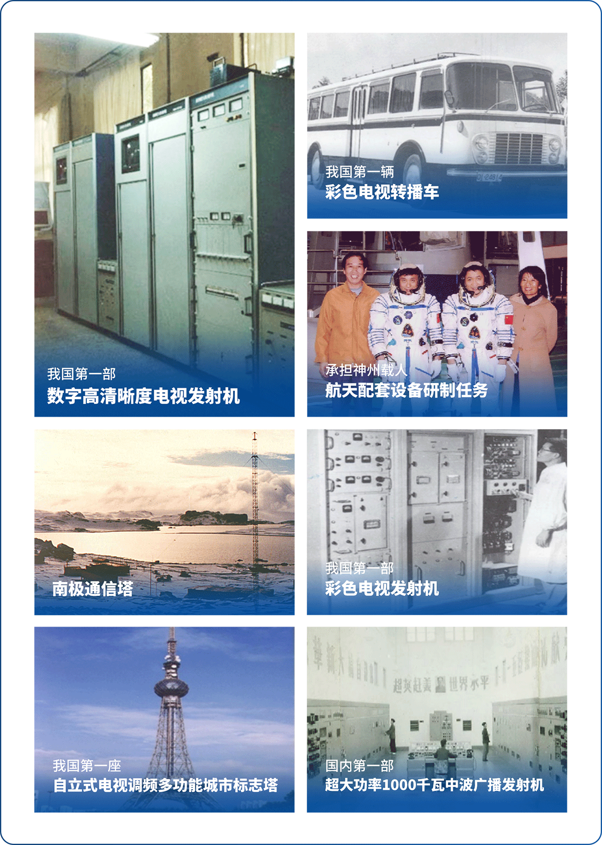 北廣不僅為我國的廣播、電視、通信事業研制并提供了大量先進的發射設備,還先后為我國第一枚運載火箭、第一顆同步衛星、第一次南極考察等重要工程研制了關鍵配套設備,多次受到中共中央、國務院、中央軍委的表彰。1978年以來,累計獲得國家級、部級、市級科技成果獎項200余項。